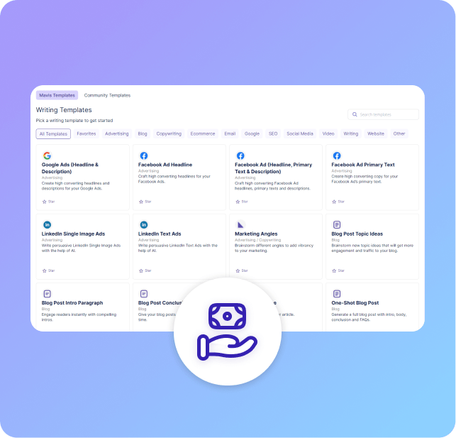 Boost engagement and conversions effortlessly. Write persuasive copy for your ads, headlines, emails and more. You can choose from our 100+ ready-to-use templates, or create your own custom templates tailored to your unique use cases.